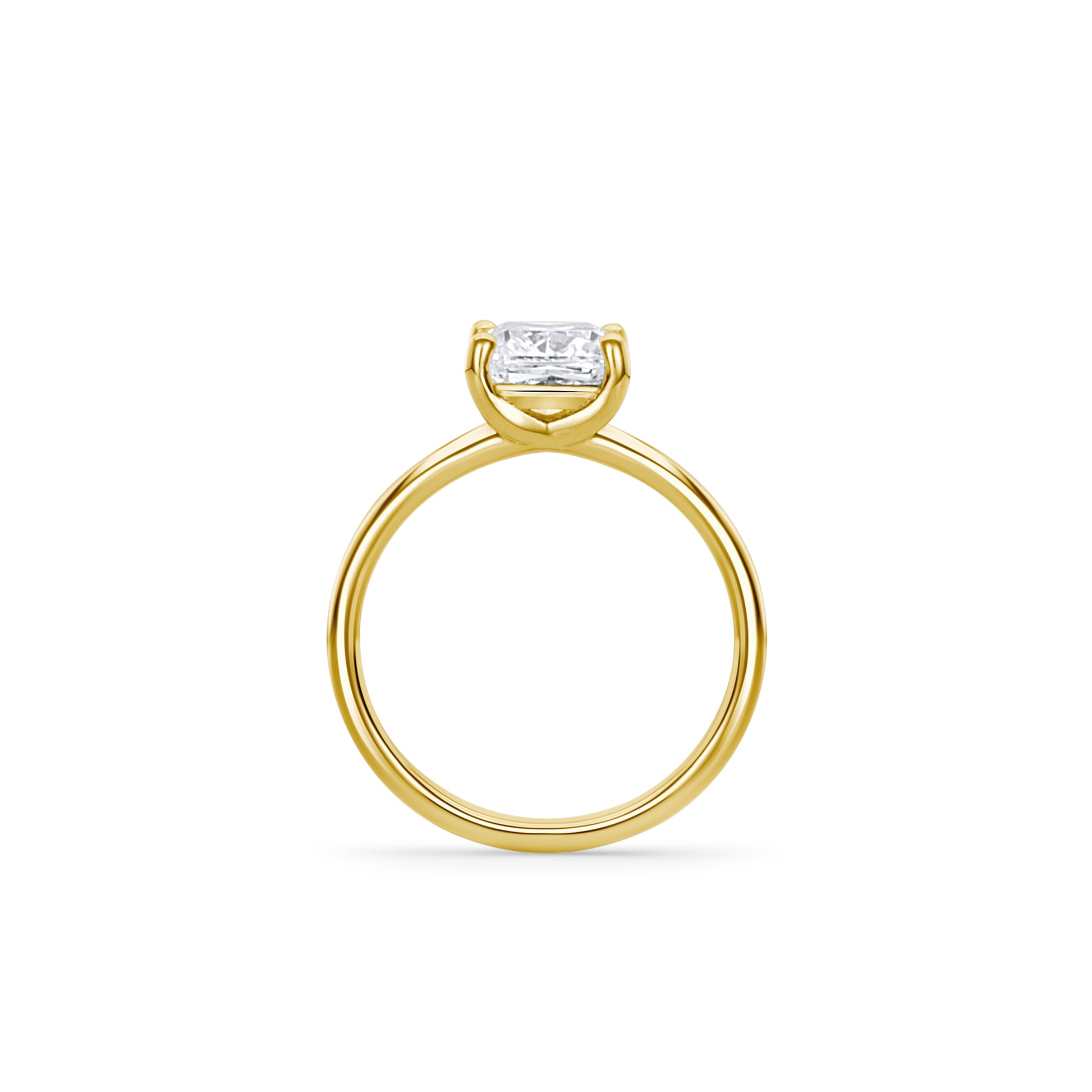 This stunning Crown Yellow Gold Ring features a 2.0ct cushion-cut lab-grown diamond, beautifully set to maximize brilliance and sparkle. Crafted with smooth, polished gold shoulders, this ring is perfect as an engagement ring or a statement piece for special occasions.