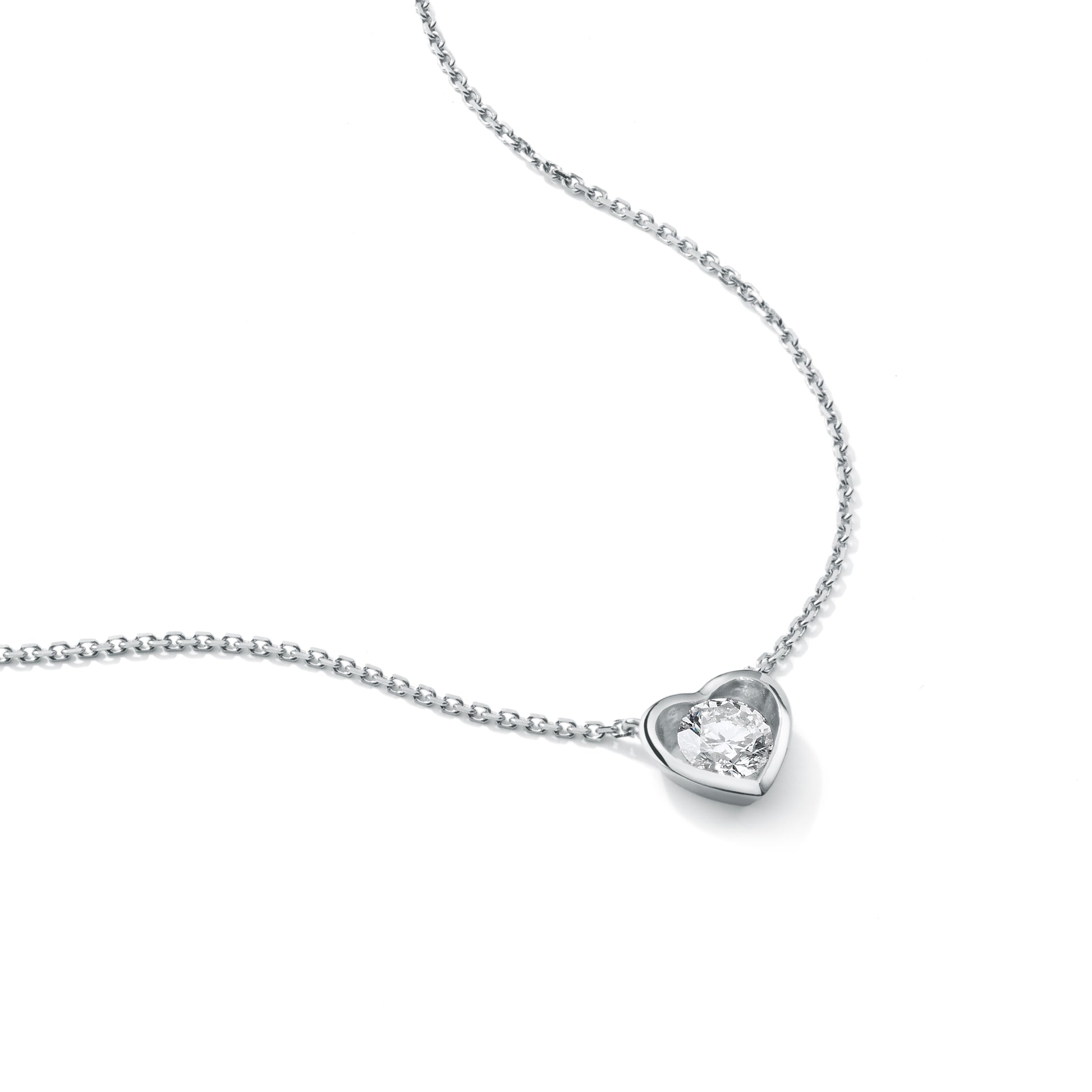 A delicate heart pendant crafted in 18ct white gold , suspended from a fine 1.2 mm trace chain. Set with a brilliant 5.5 mm lab-grown diamond with a total carat weight of 0.6 ct.