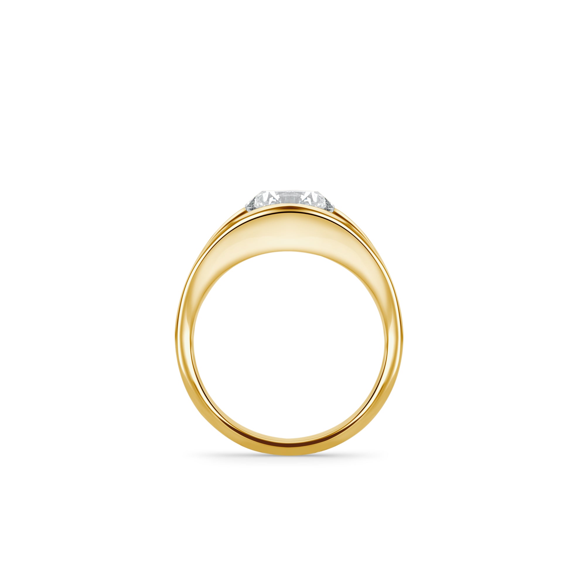 A modern gold ring with an open flowing design, a 1.27ct brilliant-cut diamond set at the centre.